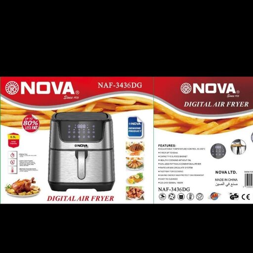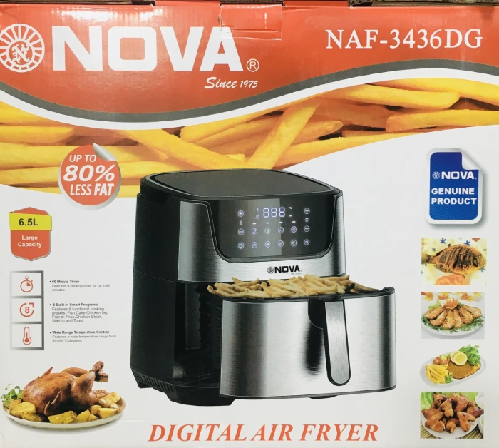سرخ کن نوا مدل NAF3436DG دارای ظرفیت 6.5 لیتر واقعی، دارای هشت برنامه پخت از پیش طراحی شده و پنل کاملا لمسی می باشد. جلوی این سرخ کن از جنس استیل می باشد و بدنه آن از جنس پلاستیک فشرده ساخته شده است.