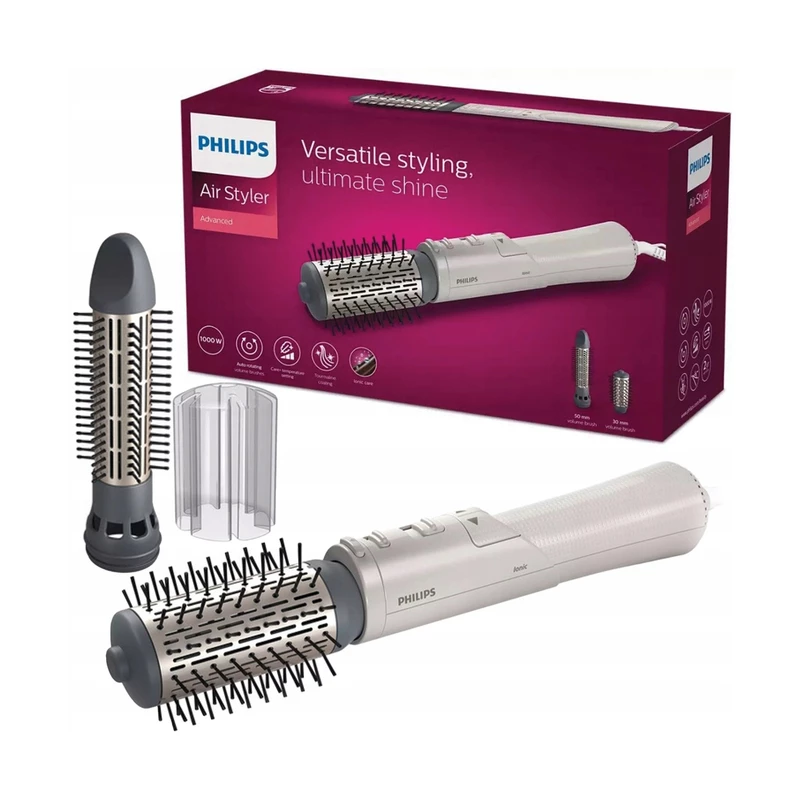 سشوار دارای ۲ سر میباشد ( یک سر چرخشی ۵۰ میل و یک سر ثابت ۳۰ میل ) ا- ایونیک - سیم گردان - ۱۰۰۰ وات - چپ گرد و راست گرد - ۳ تنظیم سرعت -سرامیک تورمالین -