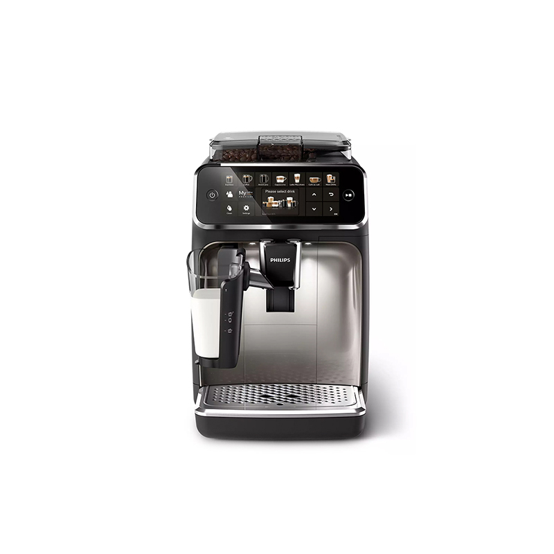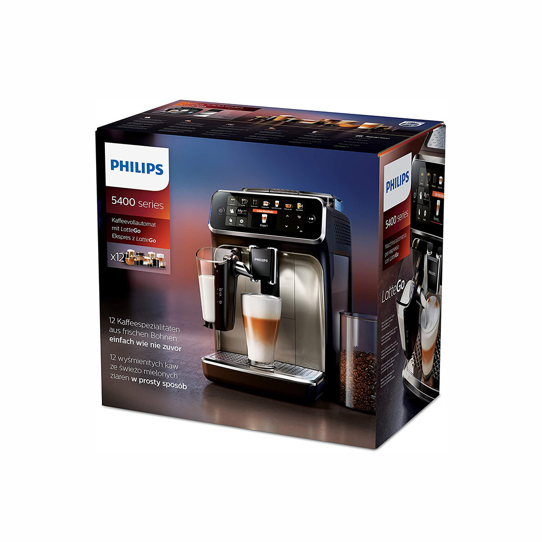 اسپرسوساز اتوماتیک فیلیپس مدل EP5447 یک دستگاه بسیار باکیفیت و حرفه ای شرکت فیلیپس می باشد، که همه احتیاجات شما را در جهت انجام همه مرحله های تهیه نوشیدنی موردنظر برطرف کرده است و بسته به توانایی هایی که دارد در سطح بالا می تواند یک کافی شاپ کوچک را به خانه شما انتقال دهد. از کوچکترین کار آماده نمودن یک فنجان قهوه یعنی آسیاب کردن دانه ها گرفته تا تهیه کردن یک نوشیدنی خوش طعم همه این ها به وسیله این دستگاه اسپرسو ساز 5447 به شکل تمام اتوماتیک قابل انجام خواهد بود.