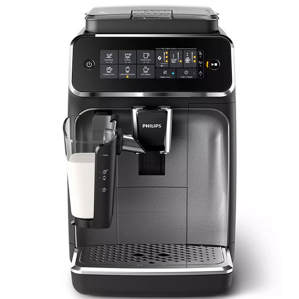 دستگاه اسپرسوساز اتوماتیک فیلیپس مدل EP3246 دستگاهی بسیار با کیفیت و حرفه ای از شرکت فیلیپس است که تمامی نیازهای شما را برای انجام تمامی مراحل تهیه نوشیدنی مورد نظر برطرف می کند به طوری که این محصول دارای 3 حالت دمای مختلف می باشد که متناسب با سلیقه خود می توانید یکی از آنها را انتخاب کرده و در عرض 15 ثانیه به نوشیدنی دلخواه خود دست یابید. این دستگاه با فشار بخار 15 بار و توان مصرفی 1500 وات یکی از بهترین و با کیفیت ترین اسپرسو ساز های موجود در بازار بوده و با عملکرد ها و قابلیت های گوناگونی طرفداران بسیاری دارد!اسپرسو ساز EP3246 دارای بدنه ای از جنس پلاستیک مقاوم میباشد که به رنگ مشکی تولید شده است. این محصول دارای مخازن شیر، آب و قهوه بوده و هر یک از آنها به ترتیب از ظرفیت های 0.26 لیتر، 1.8 لیتر و 275 گرم برخوردار می باشند. همچنین این اسپرسو ساز از 1 عدد نازل بخار و 2 عدد نازل قهوه نیز بهره مند شده است.