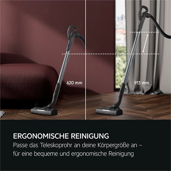 سیم 9 متری دستگاه شعاع عملکرد 12 متر را قراهم کرده تا بتوانید فضای زیادی را بدون تعویض پریز برق به راحتی جارو بکشید. صدای تولید شده توسط این مدل تنها 69 دسی بل بوده که نشان می دهد چقدر جاروبرقی کم صدایی است. صفحه نمایش کوچکی روی جاروبرقی وجود دارد که نشان می دهد کیسه گرد و غبار نیاز به تعویض دارد یا خیر.