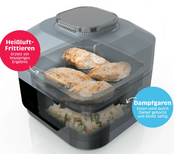 پخت با بخار آب - باعث افزایش یکنواختی و بافت نرم در هنگام پخت می شود. کیک های پف دار و نان یا غذاهای مقوی مانند گراتن سبزیجات را در خانه بپزید. پخت و پز با بخار آب - روشی سالم تر برای پختن سبزیجات تازه یا ماهی بدون نتیجه ترد. حالت های سرخ کردن/پختن: کباب کردن - حرارت بالا برای کاراملی شدن و قهوه ای شدن غذا. مناسب برای سینه مرغ ترشی، بادمجان کبابی یا سیخ هالومی. سرخ کردن هوا - غذاهای آماده تازه و یخ زده با روغن کم یا بدون روغن.