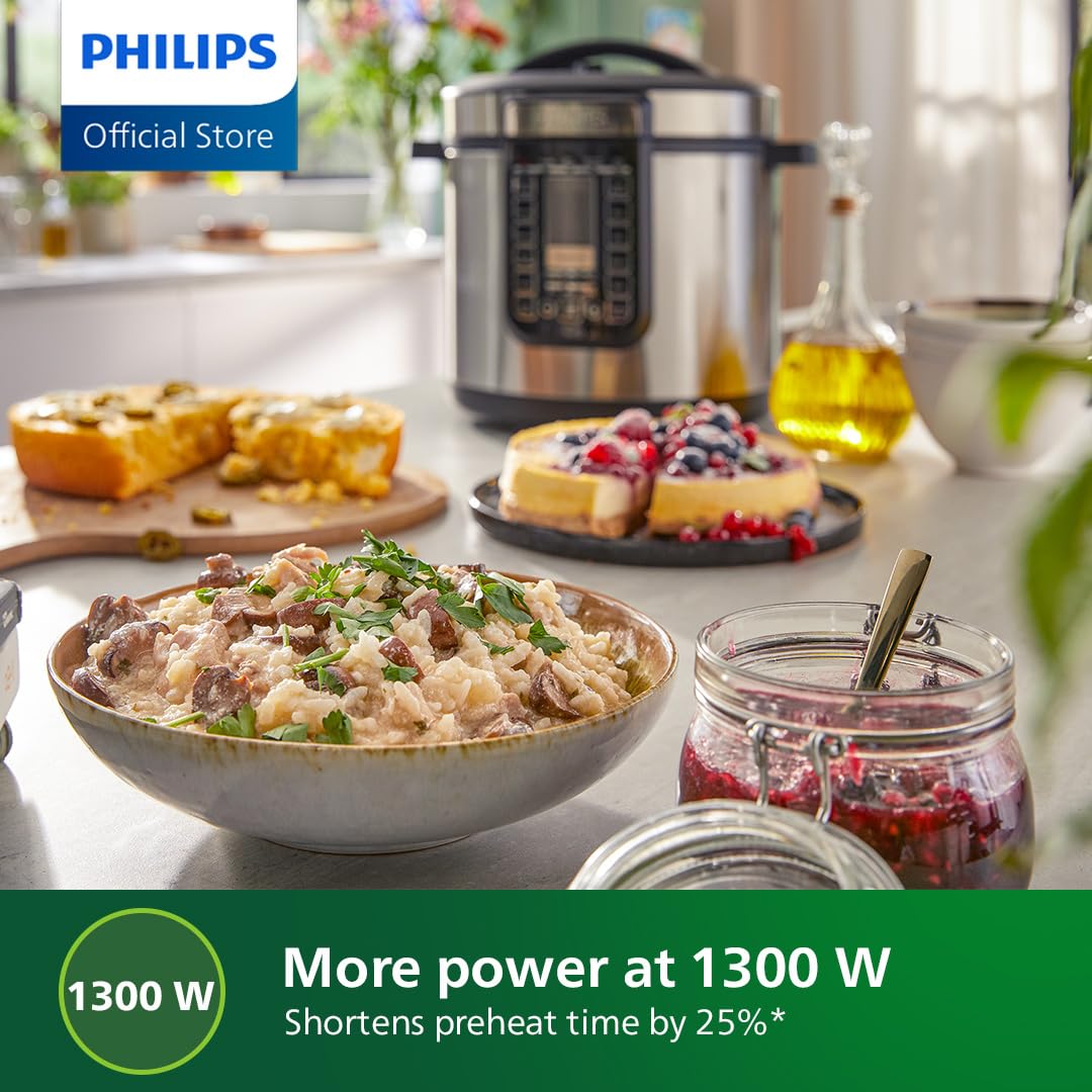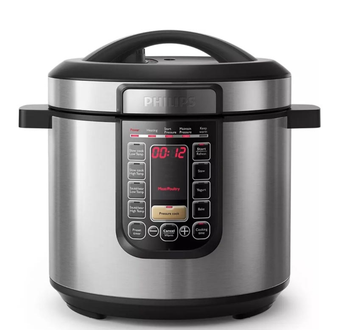اگر به اصلیترین ویژگی مولتی کوکر فیلیپس اشاره کنیم، بیشک طراحی جذاب آن میباشد. بدنه این دستگاه از جنس استیل ضد زنگ و بسیار مقاوم ساخته شده است که در برابر هر ضربهای محکم بوده و تحمل هر گونه فشار و دما را دارد. ظرف داخلی این مولتی کوکر از جنس آلیاژ آلومینیوم با دوام ساخته شده است که گرما را به بهترین شکل ممکن پخش میکند. روکش دیگ این دستگاه به صورت ضد خراش و نچسب ساخته شده است که علاوه بر عدم چسبندگی مواد غذایی، شستشوی دستگاه را نیز آسان میکند. همچنین درب داخلی مولتی کوکر برند فیلیپس به راحتی جدا میشود و قابل شستشو است.