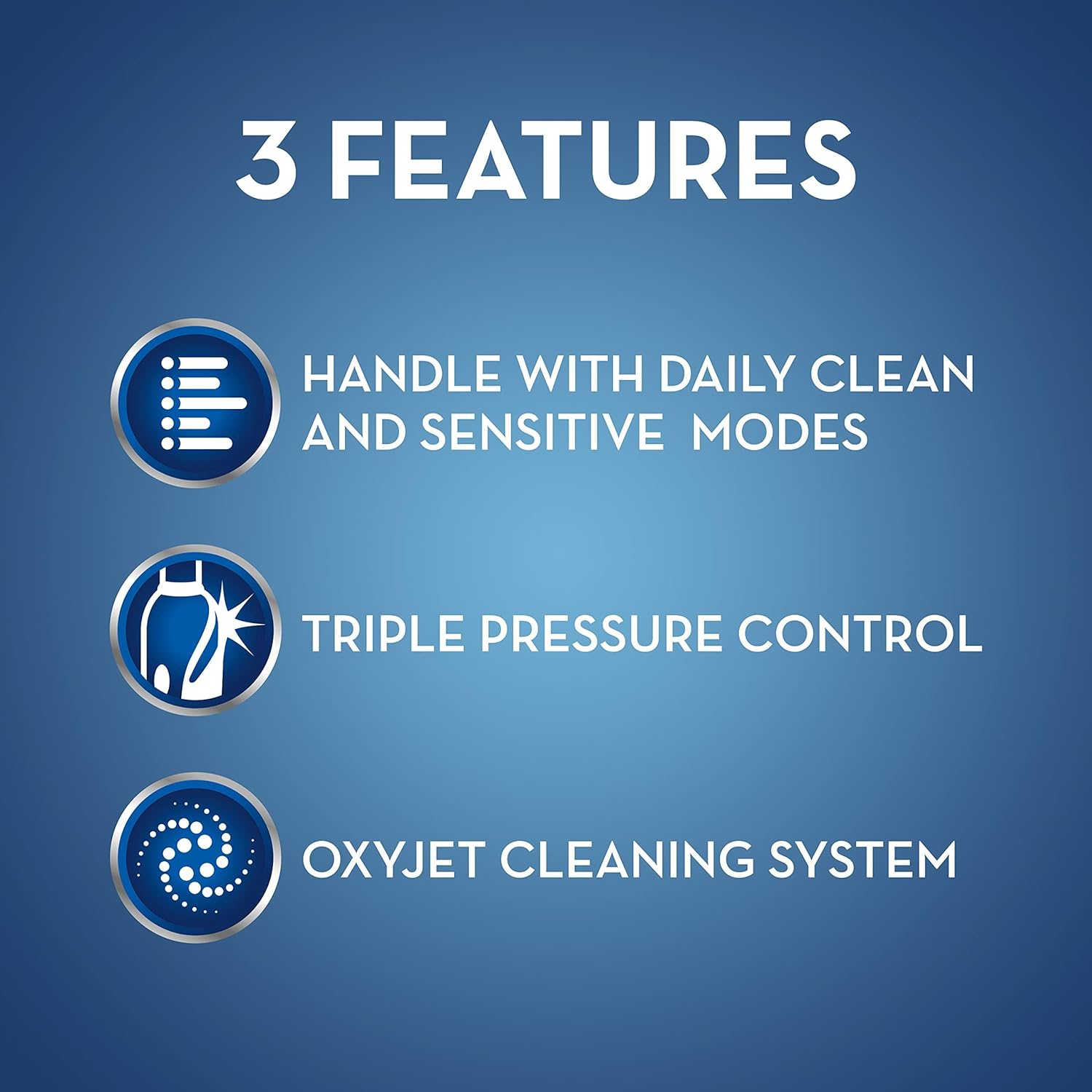 برای تغییر مدل پاشیدن آب، در قسمت پایین هر برس آبفشان، قطعهای وجود دارد که اگر به سمت بالا هل داده شود، پاشش به صورت افقی و اگر به سمت پایین باشد، پاشیدن آب به صورت پاششی و دورانی خواهد بود. از جمله مزایای این مسواک، وجود سنسور فشار اتوماتیک است که وقتی مصرف کننده بیش از حد نیاز به دندان فشار وارد کند، با هشدار مواجه میشود. همچنین تایمر دستگاه هر 30 ثانیه از طریق ویبره، اتمام مسواکزدن 4/1 فک را اعلام میکند تا تمام قسمتهای دندان در زمانهای مساوی مسواک زده شود. این کیت دارای قابلیت اتصال به دیوار سرویس بهداشتی است و ابزارهای لازم آن داخل بستهبندی محصول قرار گرفتهاند. به کمک کیت مسواک برقی اکسیجت مراقبتی تمام و کمال از دندانها انجام میشود و برای افرادی که میخواهند بدون پرداخت هزینه گزاف و صرف وقت در دندانپزشکی، پلاک و جرم دندانی را کاهش دهند، انتخابی بی نظیر و به صرفه است. شرکت آلمانی اورال-بی با توجه به نیاز مصرفکنندگان، محصولات متنوع و باکیفیتی تولید کرده است.