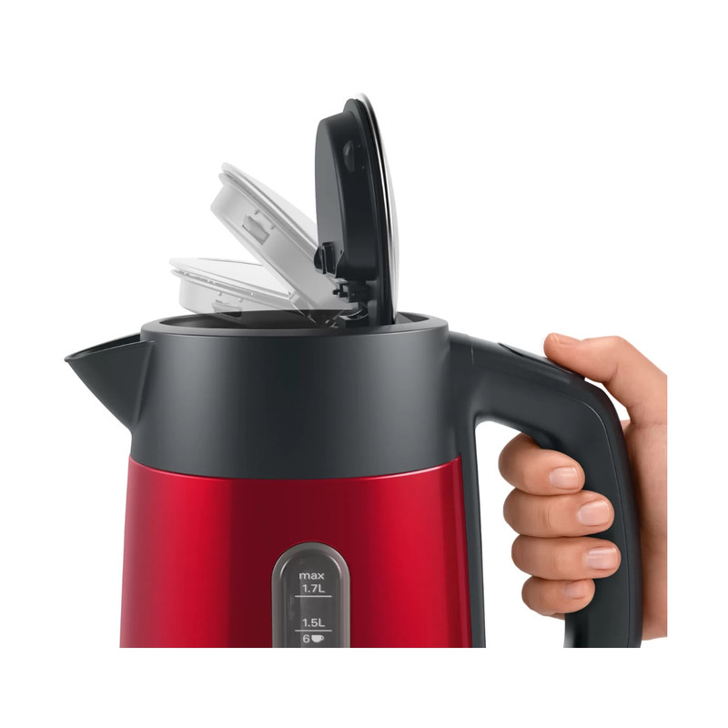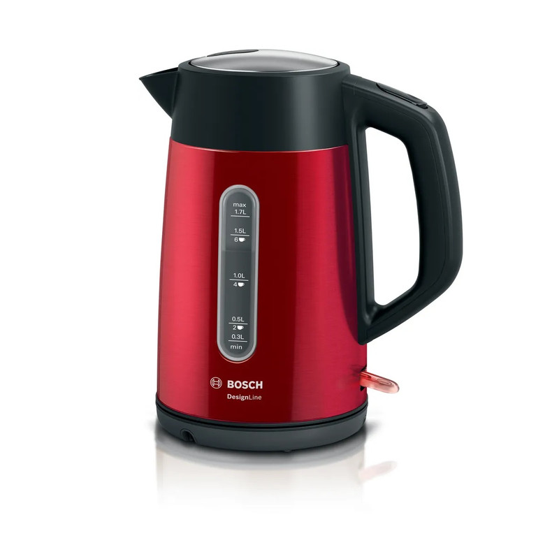 کتری برقی بوش مدل TWK4P434 دستگاه بادوام با طراحی شیک و خاص کمپانی بوش میباشد. این محصول با توان 2400W و المنت گرمایی بسیار باکیفیت در قسمت زیرین کتری، قابلیت جوشاندن آب در کسری از زمان را دارد.ظرفیت این دستگاه 1.7 لیتر بوده و به جز درب و قسمت پایه محصول که از پلاستیک طراحی شده اند، سایر نقاط دستگاه از استیل ضد زنگ طراحی شده. پلاستیک های بکاررفته در این محصول همگی عاری از مواد شیمیایی BPA و همچنین مقاوم در برابر گرما و حرارت میباشند. کتری برقی بوش استیل مدل TWK4P434با طراحی شیک و ارگونومیک، همچنین وزن و ابعاد بسیار مناسب، از جمله محصولات محبوب کمپانی آلمانی در چند ساله اخیر بوده است. دستگیره این محصول کاملا ارگونومیک طراحی شده و خاصیت عایق سرد را نیز دارد، تا گرمای سطح استیل و درون محفظه، در قسمت دستگیره احساس نشود.نشانگر سطح آب نیز در کنار بدنه قرار دارد تا سهولت کار با محصول را برایتان دوچندان کند.