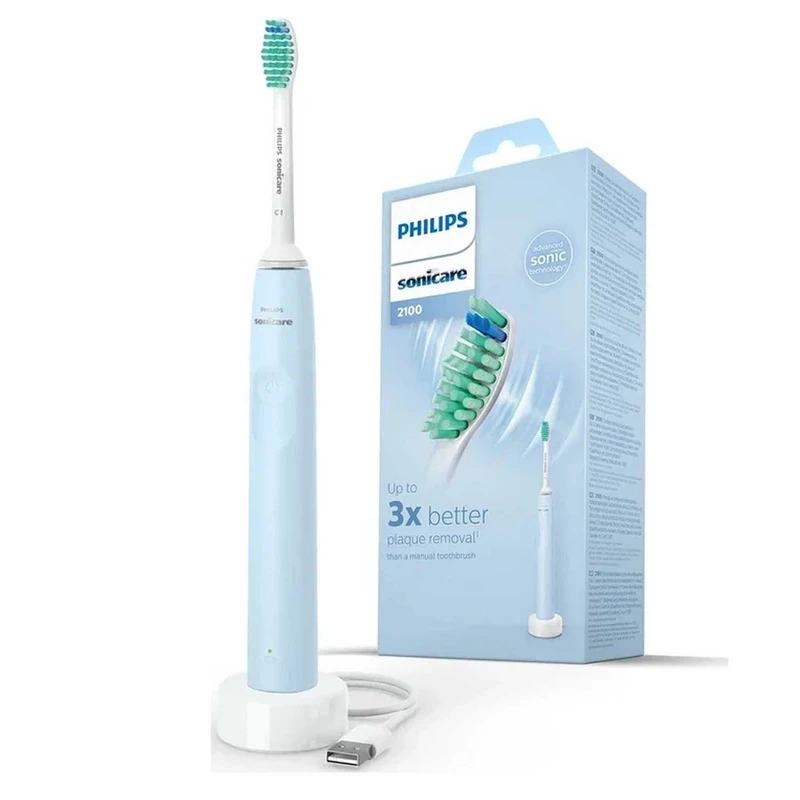 مسواک برقی سونیکار فیلیپس سری 2100 آبی روشن. فناوری Sonic همراه با عمل مسواک ما به آرامی پلاک را تا 3 برابر بهتر از مسواک دستی از بین می برد. تایمر 2 دقیقهای هوشمند و کوادپیسر 30 ثانیهای شما را راهنمایی میکنند که برای مدت زمان توصیهشده در تمام نواحی دهان خود مسواک بزنید تا از تمیزی کامل اطمینان حاصل کنید.