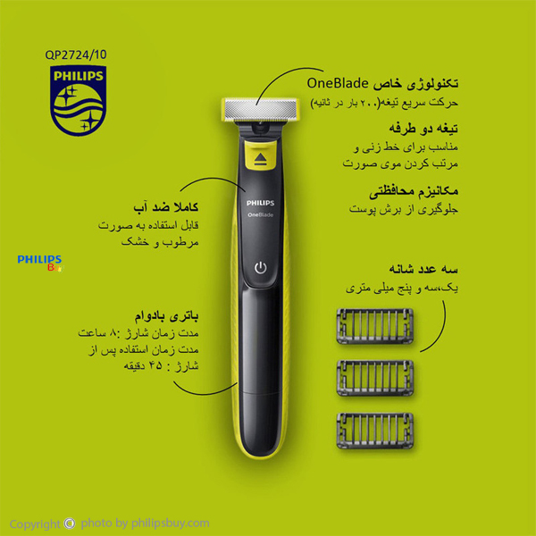 ماشین اصلاح صورت فیلیپس one blade QP2724/10 دستگاهی فوق العاده سبک و خوش دست و با کیفیت است که با نوع سری که دارد گزینه و انتخاب بسیار عالی و مناسبی برای آقایانی میباشد که پوستهای حساس دارند. این دستگاه دارای ویژگیهای متعددی میباشد که آن را به یک محصول کاملا متفاوت و منحصر به فرد تبدیل کرده است.