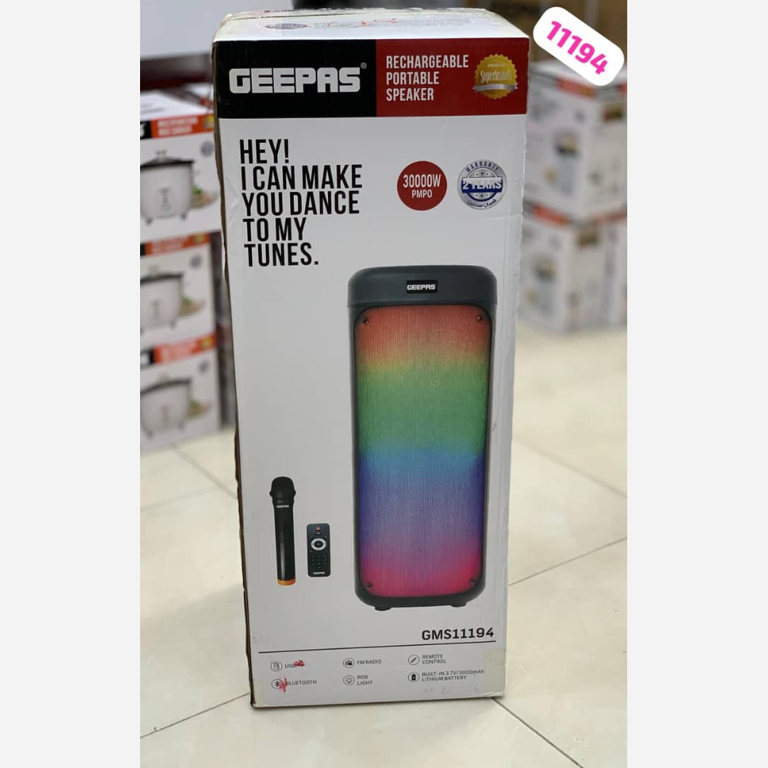 اسپیکر جیپاس مدل 11194 با قابلیت برق و شارژ دارای ریموت کنترل و میکروفن و رقص نور