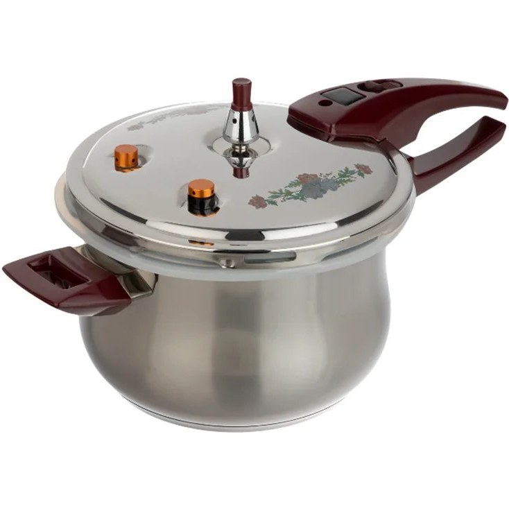 • ویژگی ها: جنس: استیل ضد زنگ _ بدنه و کفی استیل 3.5 لیتر گیره با دوام گیره فوری و ایمنی نشانگر فشار منحصر به فرد سایر توضیحات: دارای سوپاپ اطمینان _ دارای واشر سلیکونی بادوام