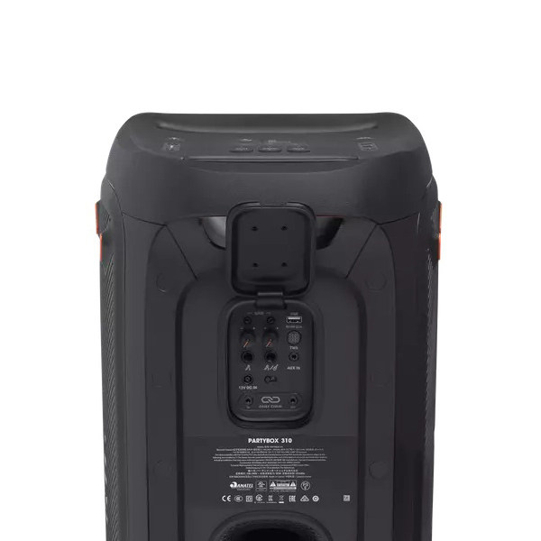 اسپیکر حرفهای PartyBox 310 جدیدترین مدل از اسپیکرهای سری پارتی باکس از کمپانی جی بی المی باشد. شما میتوانید از این سیستم صوتی در دو حالت برق یا باتری استفاده کنید. درایورهای حرفهای این اسپیکر صدای موسیقی را با وضوحبالا و بیس قدرتمندی پخش میکنند و باعث افزایش هیجان مهمانی شما میشوند. کانکشنهای پرکاربرد به شما امکان اتصال آسان به دو صورت بیسیم و باسیم را میدهند تا بتوانید با هر دستگاهی بهراحتی به این سیستم صوتی متصل شوید و موسیقی دلخواه خود را بشنوید. بدنه این اسپیکر ضدپاشش آب بوده و در برابر قطرات باران و نفوذ ذرات آب و گردوغبار بسیار مقاوم است. روشهای اتصال برای اتصال به PartyBox 310 کافی است بلوتوث موبایل یا تبلت خود را روشن کنید، اسپیکر را جستجو کرده و متصل شوید. میتوانید آهنگهای موردعلاقه خود را در یک فلش مموری بریزید و از طریق پورت USB به اسپیکر متصل کرده و پخشکنید. همچنین میتوانید توسط کابل AUX دستگاه خود را از طریق ورودی 3.5 میلیمتری به اسپیکر متصل کنید. حالا فقط دکمه پخش را فشار داده و از شنیدن موسیقی موردعلاقه خود لذت ببرید.