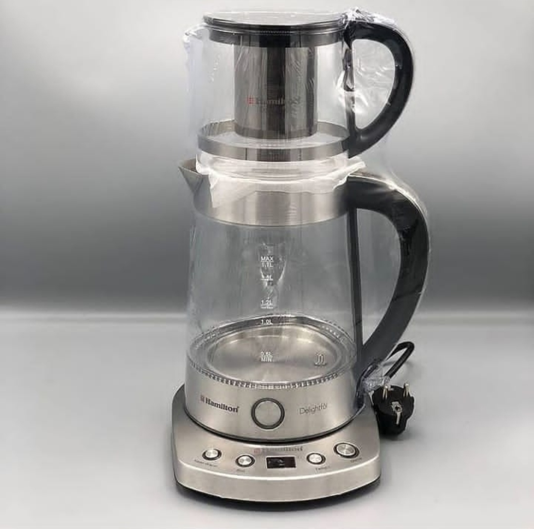 تنظیمگر دیجیتالی دما در عملکرد کتری عملکرد خاموش شدن خودکار در صورت اتمام آب کتری و پس از ۳ ساعت عملکرد خودکار رفتن به حالت گرم نگه دارنده پس از جوشیدن آب کتری بدون سیم با قابلیت چرخش ۳۶۰ درجه صافی قوری از جنس استیل ضدزنگ دارای کفی دیجیتالی کنترل دما